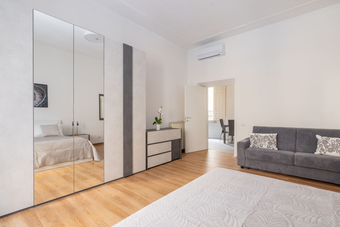 La seconda camera, con bagno ensuite, si compone di un letto alla francese, vano armadio e una piccola zona studio/lavoro, con scrivania.