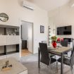 Quest’ultima è dotata di tutti i servizi come piano cottura a induzione, frigorifero e freezer, microonde, forno elettrico, lavatrice e macchina del caffè a capsule. La stanza in particolare presenta moti vani e pensili ed comodo tavolo per consumare i pasti.