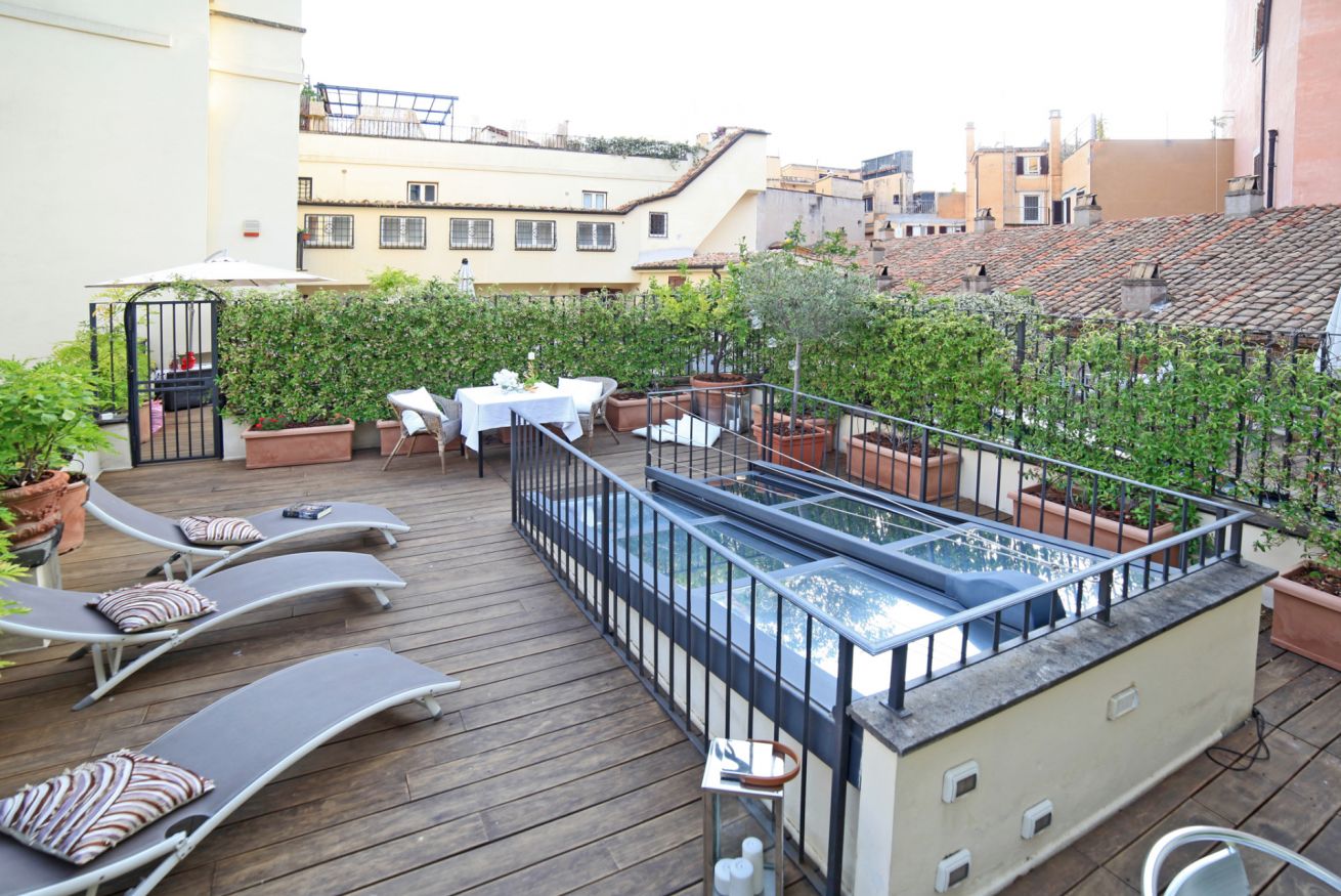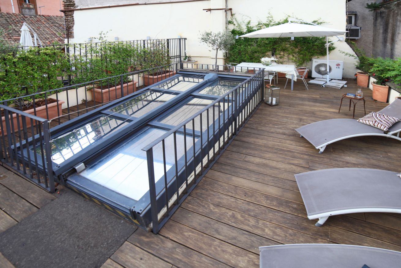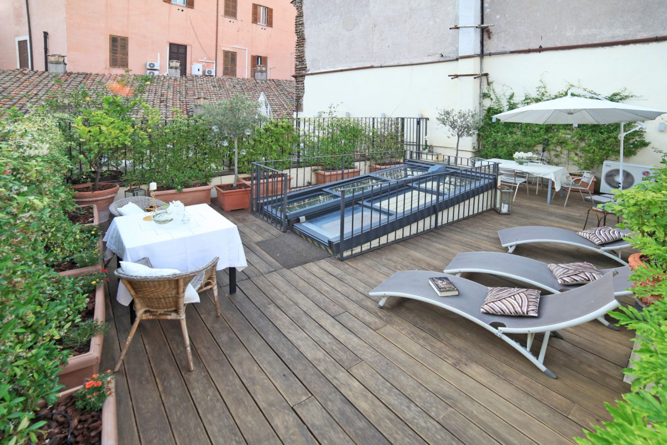 La recente ristrutturazione ha donato all’alloggio un tocco di sofisticato design che si sposa con il suo carattere storico visibile nelle alte colonne in ferro. Lo stile esclusivo é ulteriormente arricchito dall’accesso diretto al terrazzo di 50 mq (molto raro nel centro storico di Roma!) che permette un affaccio sul pittoresco vicinato.