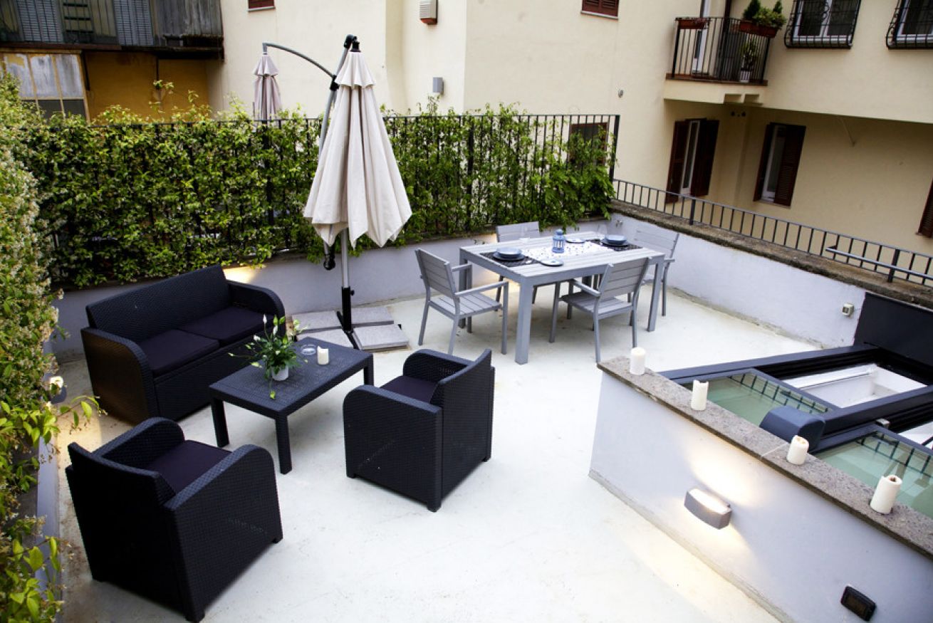 Semplicemente premendo un interruttore, una finestra a tetto di cristallo si apre rivelando l’esclusiva terrazza privata (molto rara nel centro di Roma), dove è possibile rilassarsi e ammirare il suggestivo scenario del quartiere.