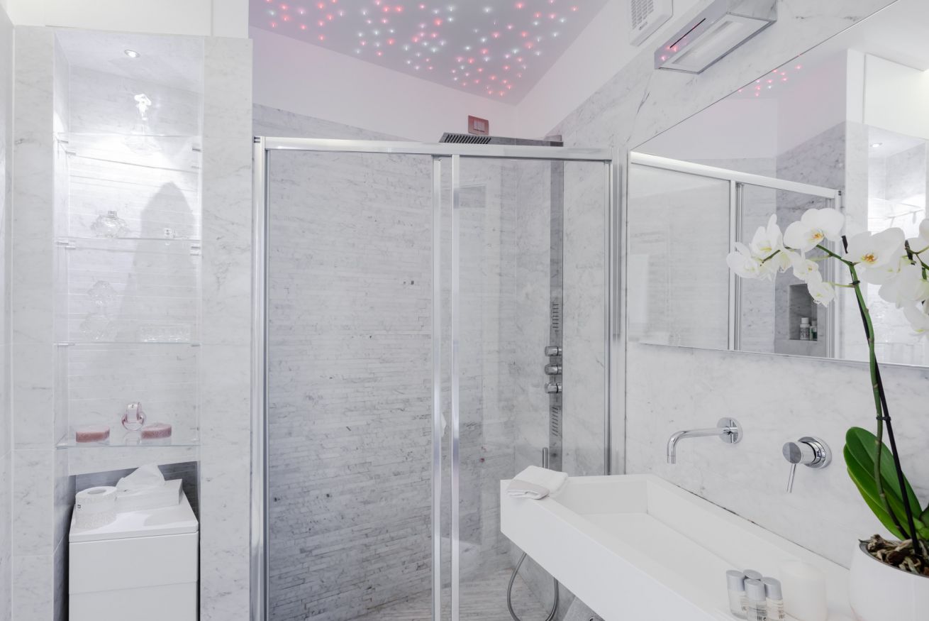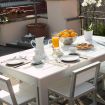 La vera particolarità di questo appartamento è la sua magnifica e spaziosa terrazza, dotata di una pergo-tenda, lettini prendisole, divanetti, tavolo con sedie, griglia per barbecue e lavabo, per cene all’aperto.