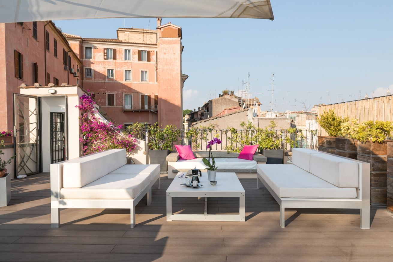 Questo esclusivo spazio all’aria aperta affaccia su tutto il pittoresco vicinato e offre una suggestiva vista della Basilica di Santa Maria Maggiore.