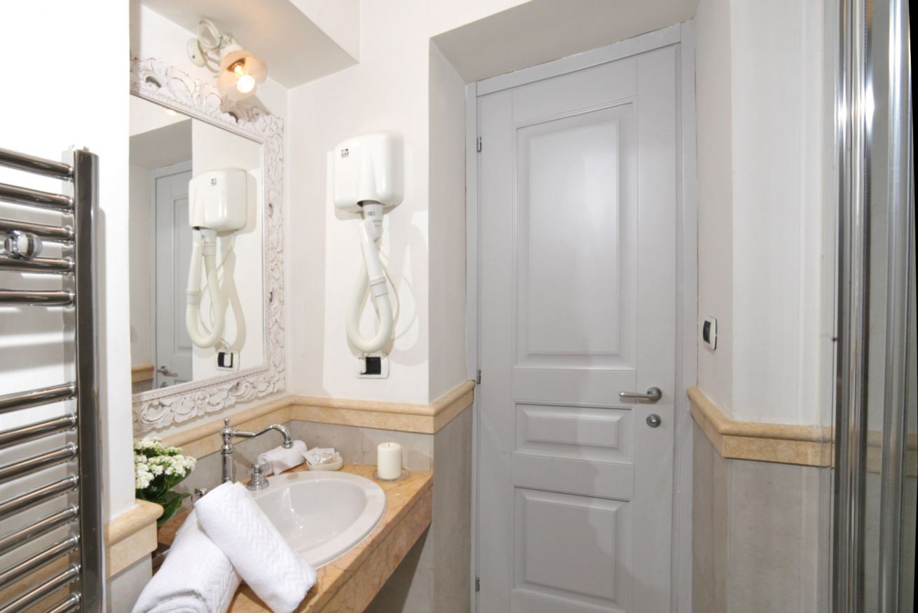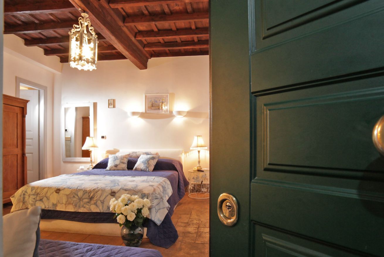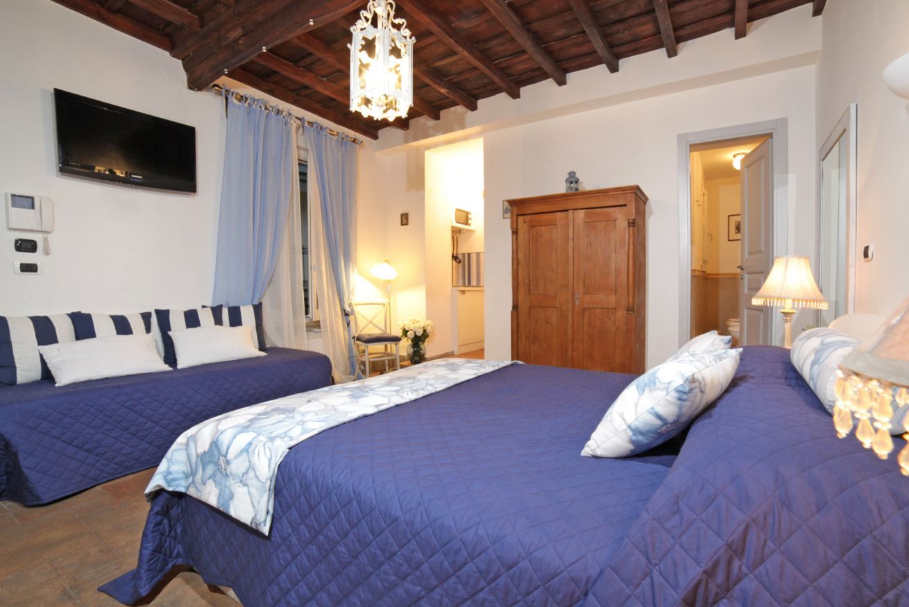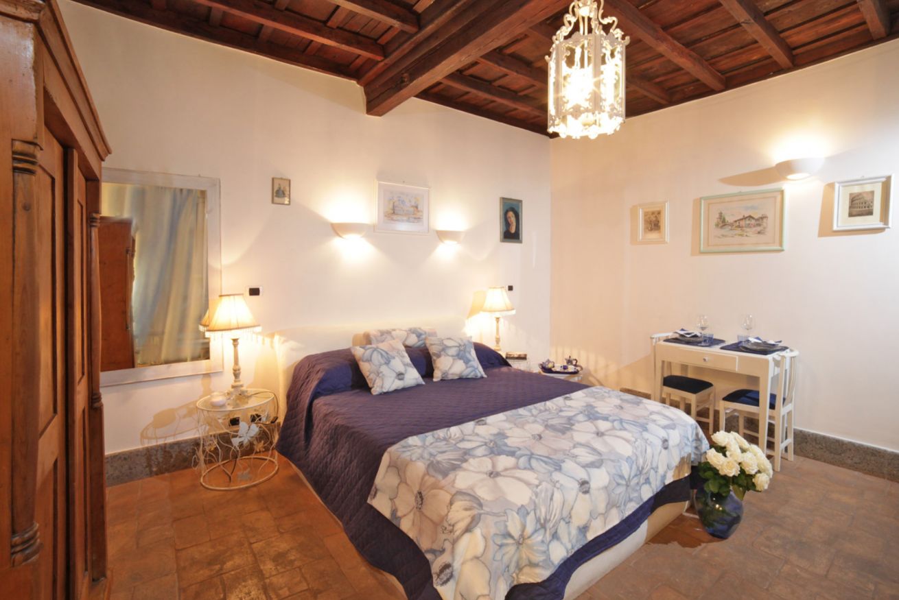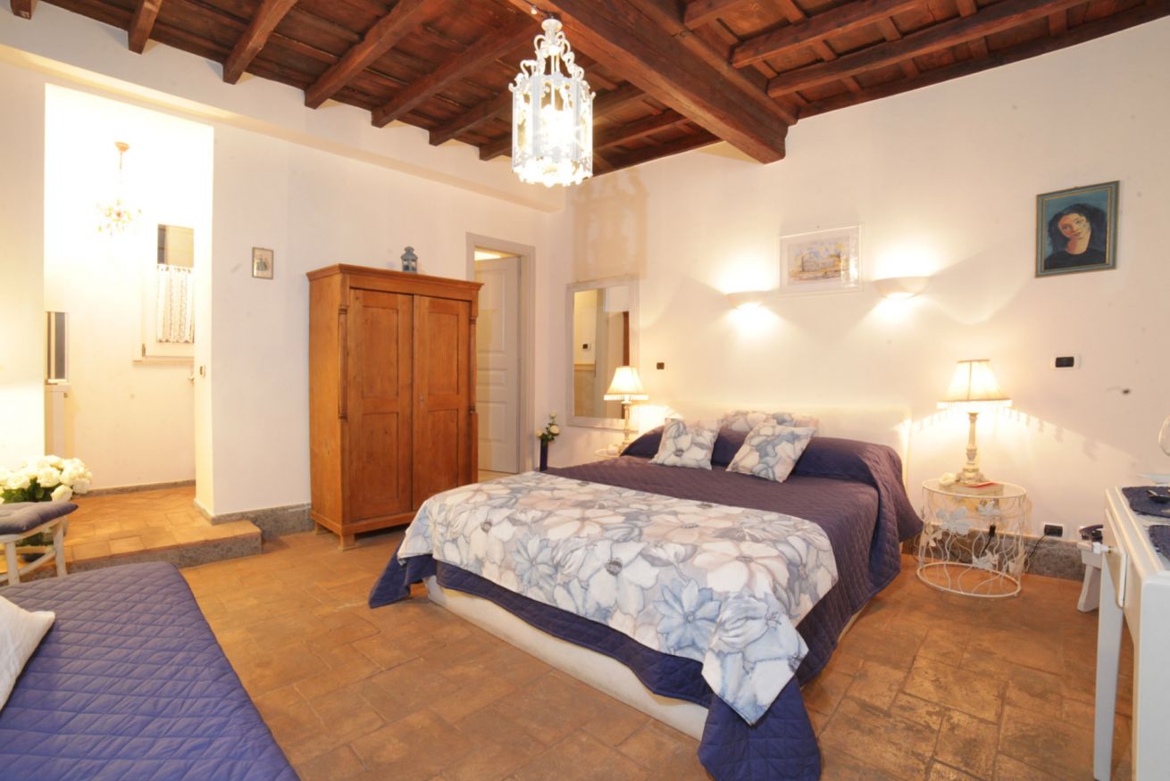 L’appartamento, con soffitto con travi a vista e il pavimento in cotto, è composto da una splendida camera con letto matrimoniale e divanetto che, se necessario, diventa un comodo letto singolo aggiuntivo.